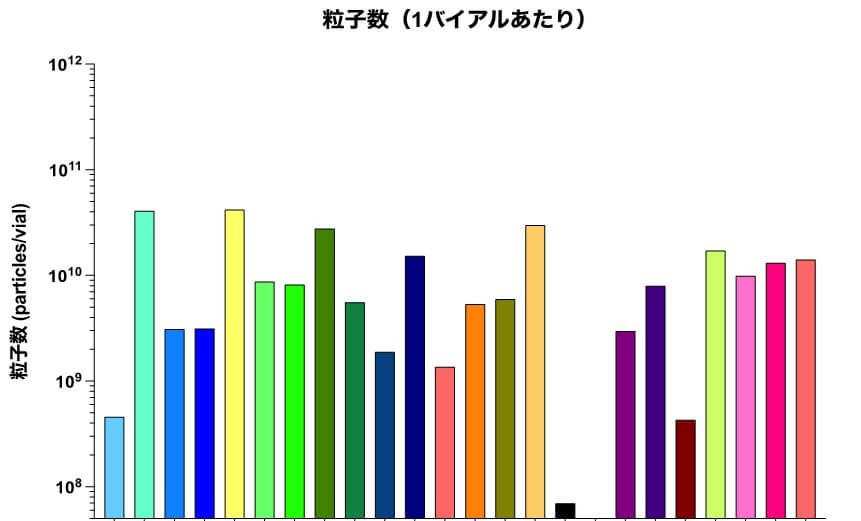 粒子がほとんど存在しない製品: 「エクソソーム」と銘打っているにもかかわらず、バイアル(瓶)の中に肝心の粒子がほとんど検出されない製品がありました。