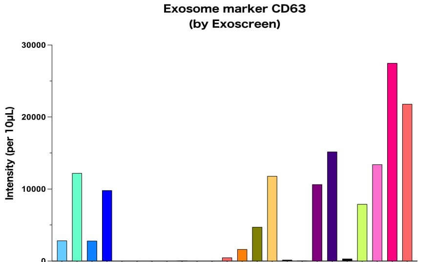 エクソソームではない粒子: 粒子らしきものが確認できても、エクソソーム特有のマーカー(目印)で確認すると反応せず、タンパク質の凝集体や不純物である可能性が高いものも多数見受けられました。